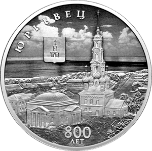 Банк России 7 июля 2025 года выпускает в обращение памятную серебряную монету номиналом 3 рубля «800-летие основания г. Юрьевца» серии «Города» (каталожный № 5111-0522).